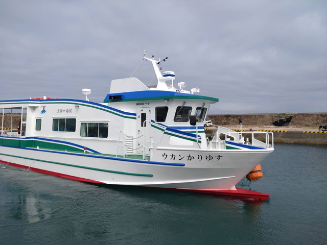 大神島に行くには、島尻港からこの大神海運の「ウカンかりゆす」という小さなフェリーに乗ります。